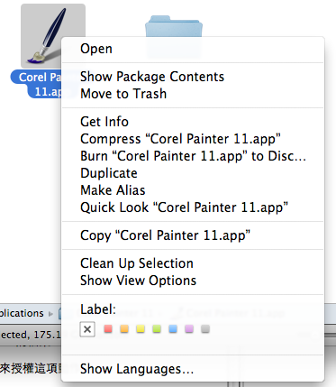 在10.5 之前的OSX 只要在應用程式上按右鍵,Get Info (中文環境是"簡介")